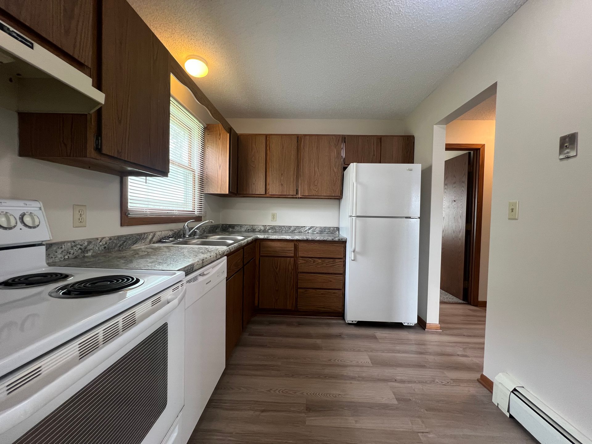 Tenant pays electric and a share of the heat. Water/sewage and trash are included. There is a mandatory $10 monthly technology fee and $10.50 landlord liability insurance fee. Renter's insurance is required.