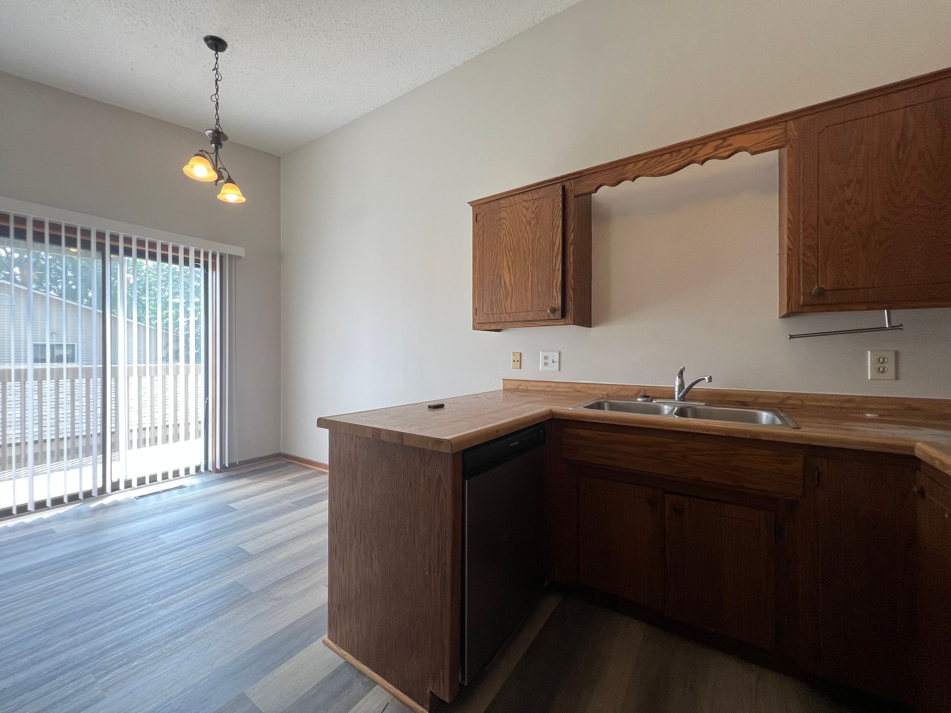 Looking for the privacy and feeling of a single family home in a great location, without having to worry about lawn and snow removal? This spacious split level 2 bed, 1 bath townhome is ready for you to call it home! The main living area in this unit has a desirable open floor plan with vaulted ceiling, while offering NEW LVP flooring throughout. This unit even has a sliding glass door going out to a deck, a dishwasher, in unit laundry and a garage spot.